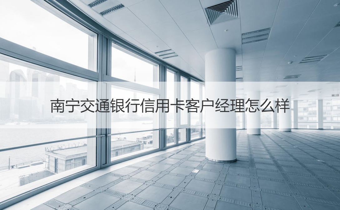许多人都会想要进银行工作,因为在银行工作是一份非常稳定的工作,那么,在银行当中,也是有着各种职业的。信用卡是大多数人都会选择开通的,因为信用卡能够解决我们的不时之需,在平时,也会有一些优惠。那么,信用卡客户经理,便是完成信用卡的营销任务的。那么,不知道大家是否了解南宁交通银行信用卡客户经理怎么样呢,那么,小编今天就为大家介绍一下南宁交通银行信用卡客户经理的相关内容吧。